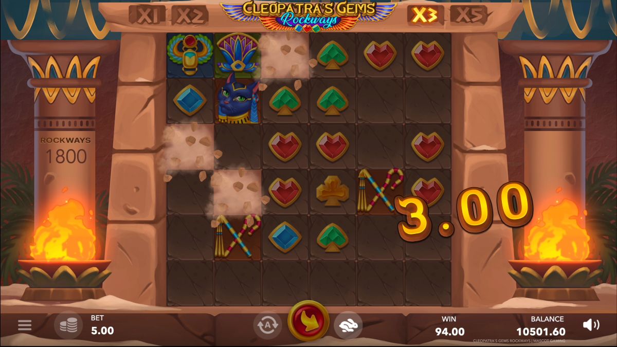 Strictly positive feedback on the PRIMAL BET. ROCKWAYS slot, which was the first release to feature RockWays mechanics, was the main reason why Mascot Gaming created Cleopatra's Gems Rockways. It is already possible to enjoy the long-awaited release as a demo on our website or get straight into real-money gambling on any partner casino website.