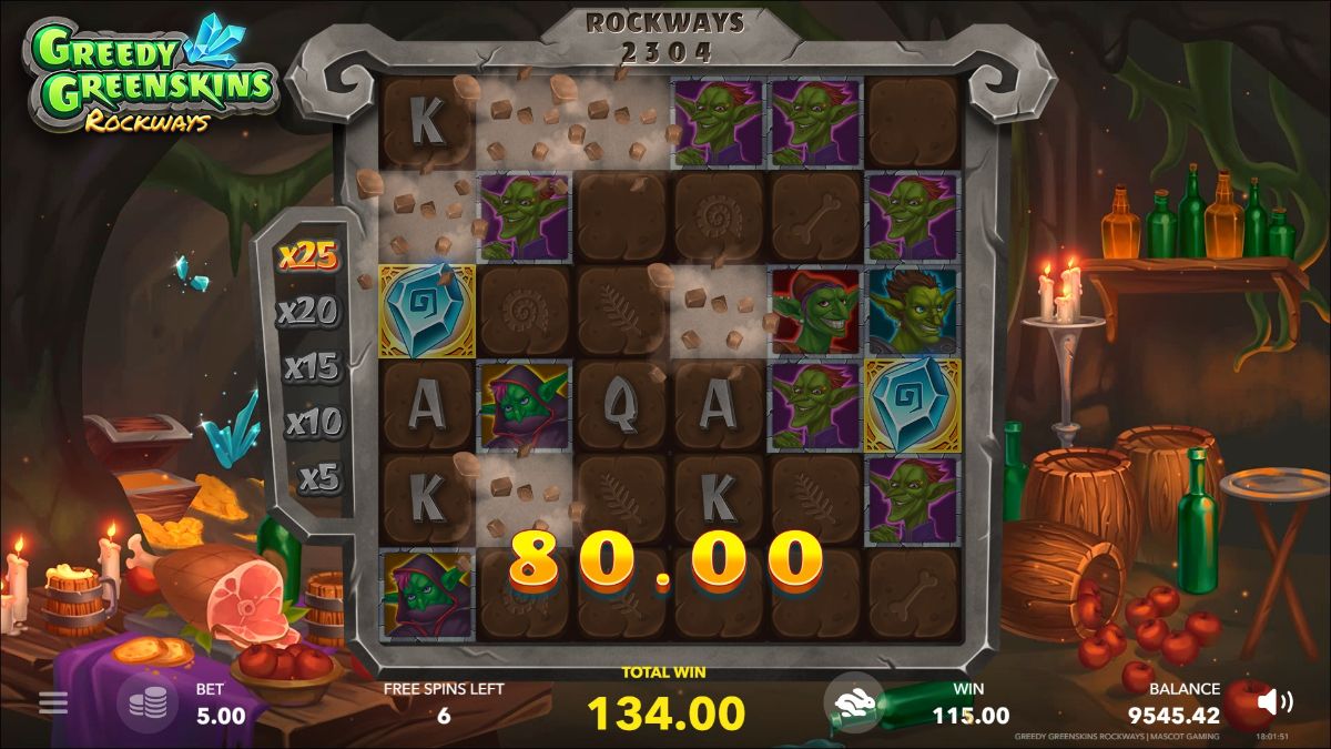 Another brand feature, the Rockfall, can be found in the structure of Greedy Greenskins Rockways. All winning symbols are instantly removed from the grid to free room for new ones.